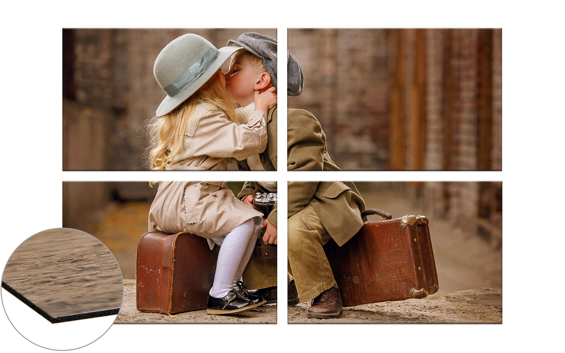 - Direktdruck auf Alu (Alu-Conbond-Platte), matte und edle Oberfläche, ist für Innen- und Außenbereich geeignet